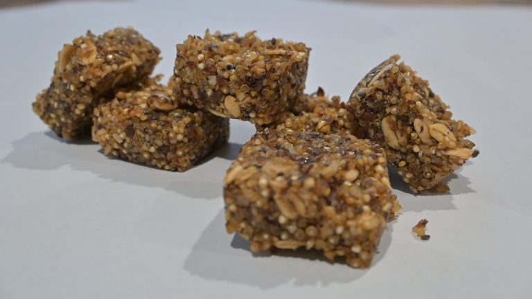 <strong>Ingredients :</strong> Rolled Oats, Roasted quinoa, Dates, Almond, Flax Seeds, Chia Seeds, Coconut, Honey, Vanila, Cinnamon